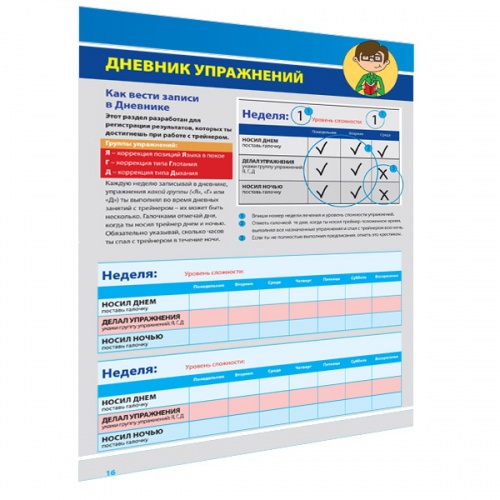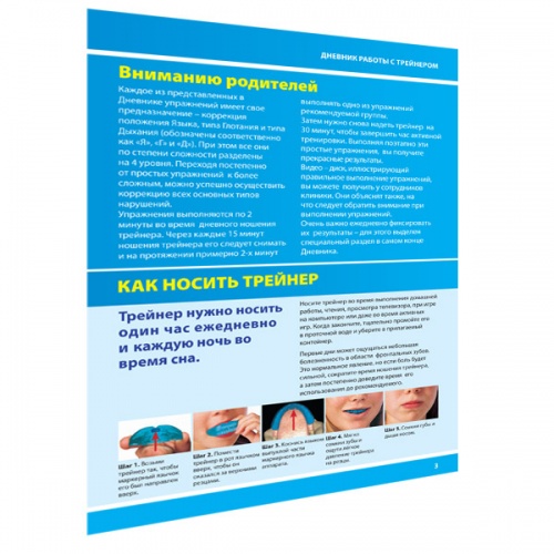 Дневник для контроля ношения ребёнком Трейнера или Миобрейс, содержит рекомендации по использованию этих аппаратов,