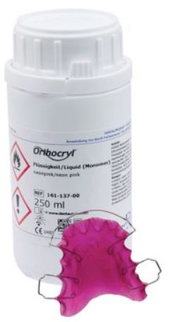 Пластмасса ортодонтическая Orthocryl неоново-розовая мономер 250 мл